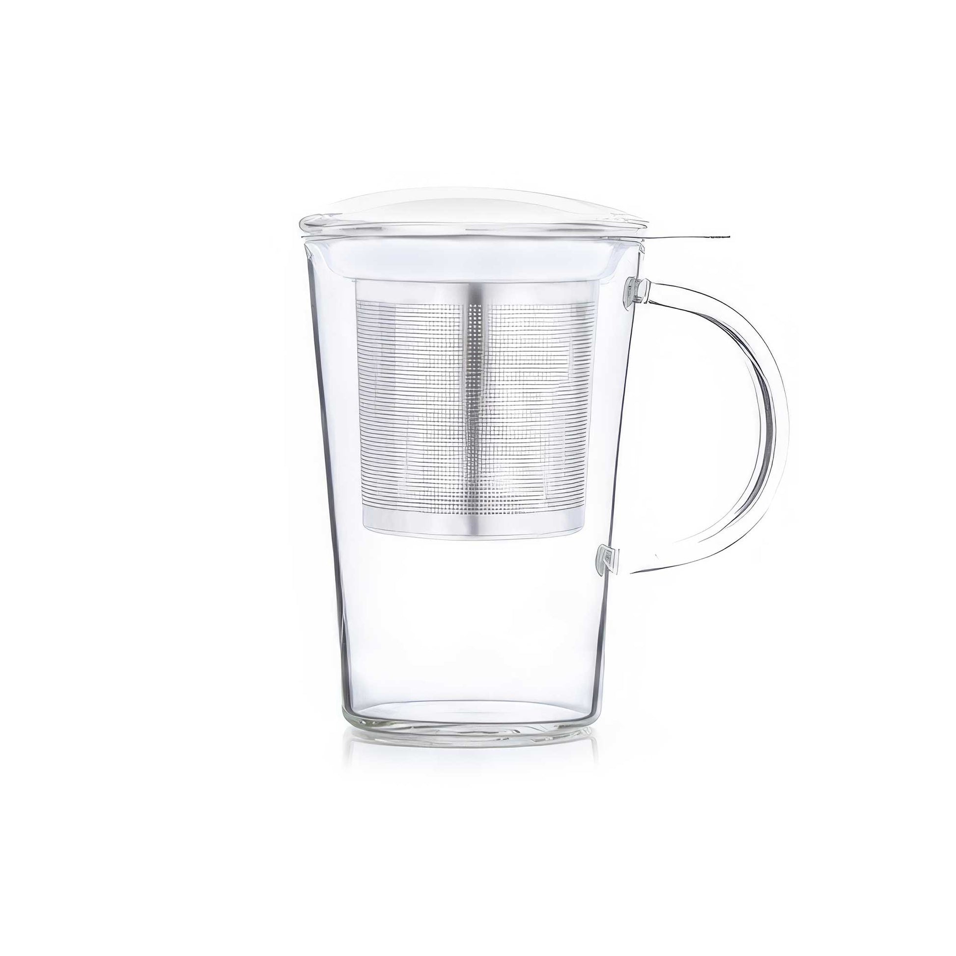 Glas-Deckelbecher (400 ml) mit feinmaschigem Edelstahlsieb – ideal für losen Tee, stilvoll und praktisch.